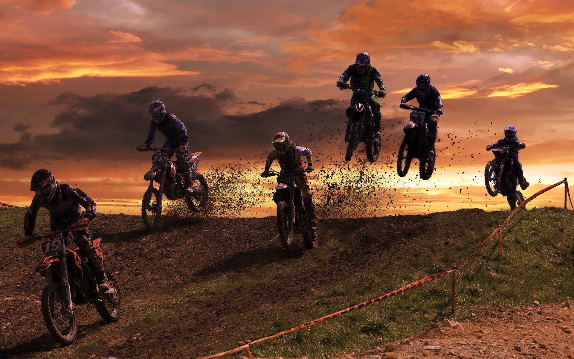 Drei motorradfahrer beim abbiegen beim sportrennen