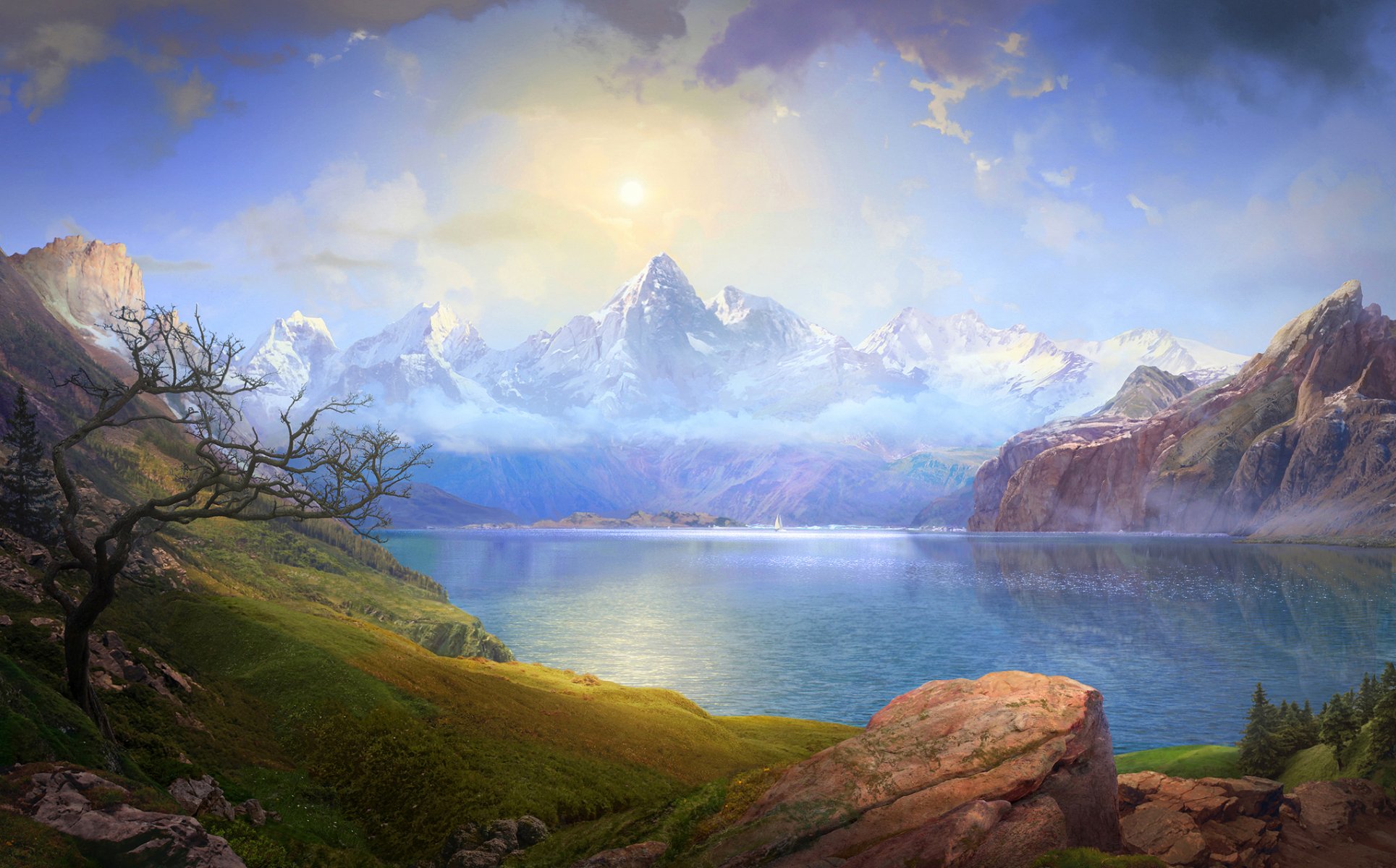 Schöne Bucht mit Brücke im Hintergrund des Waldes