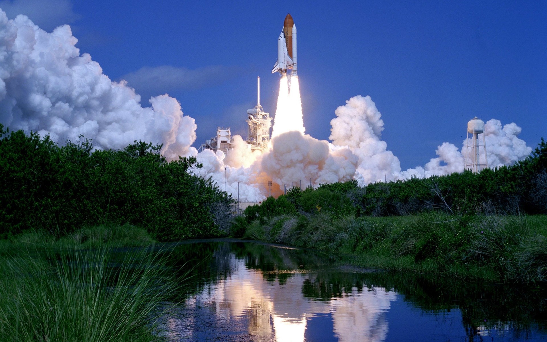 Starten eines shuttles vom weltraumbahnhof auf der erdeStarten eines Shuttles vom Weltraumbahnhof auf der Erde