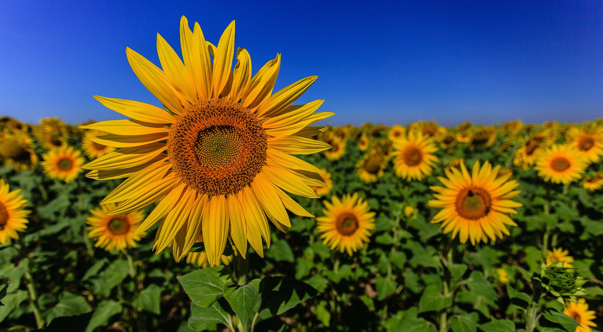 Eine biene, die auf einer hellen blume vor dem hintergrund eines hellen blauen himmels sitztEine Biene, die auf einer hellen Blume vor dem Hintergrund eines hellen blauen Himmels sitzt