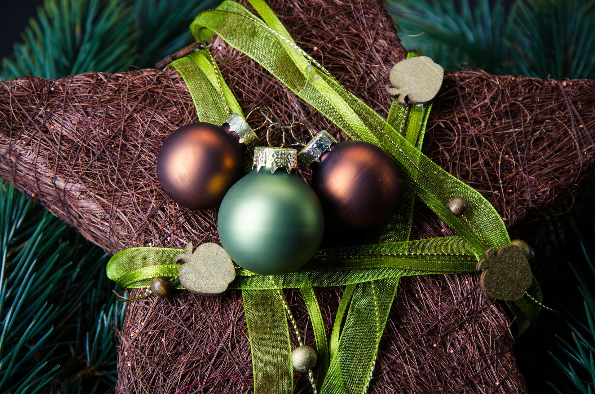 Weihnachtsdekoration auf christbaumzweigen mit christbaumspielzeugWeihnachtsdekoration auf Christbaumzweigen mit Christbaumspielzeug