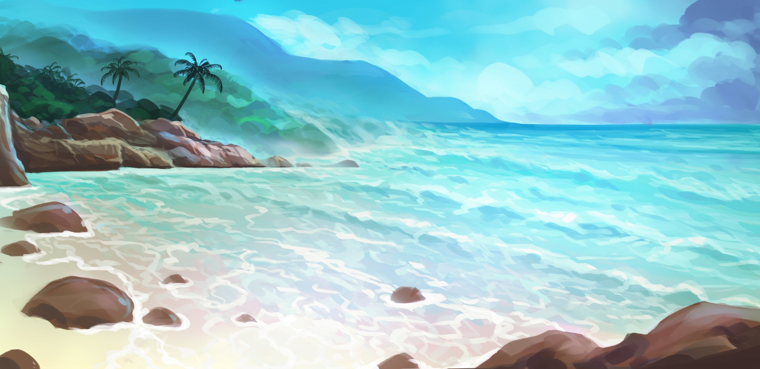 Kennungen:kunst, gemalte landschaft, palmen, meer, insel, sommer